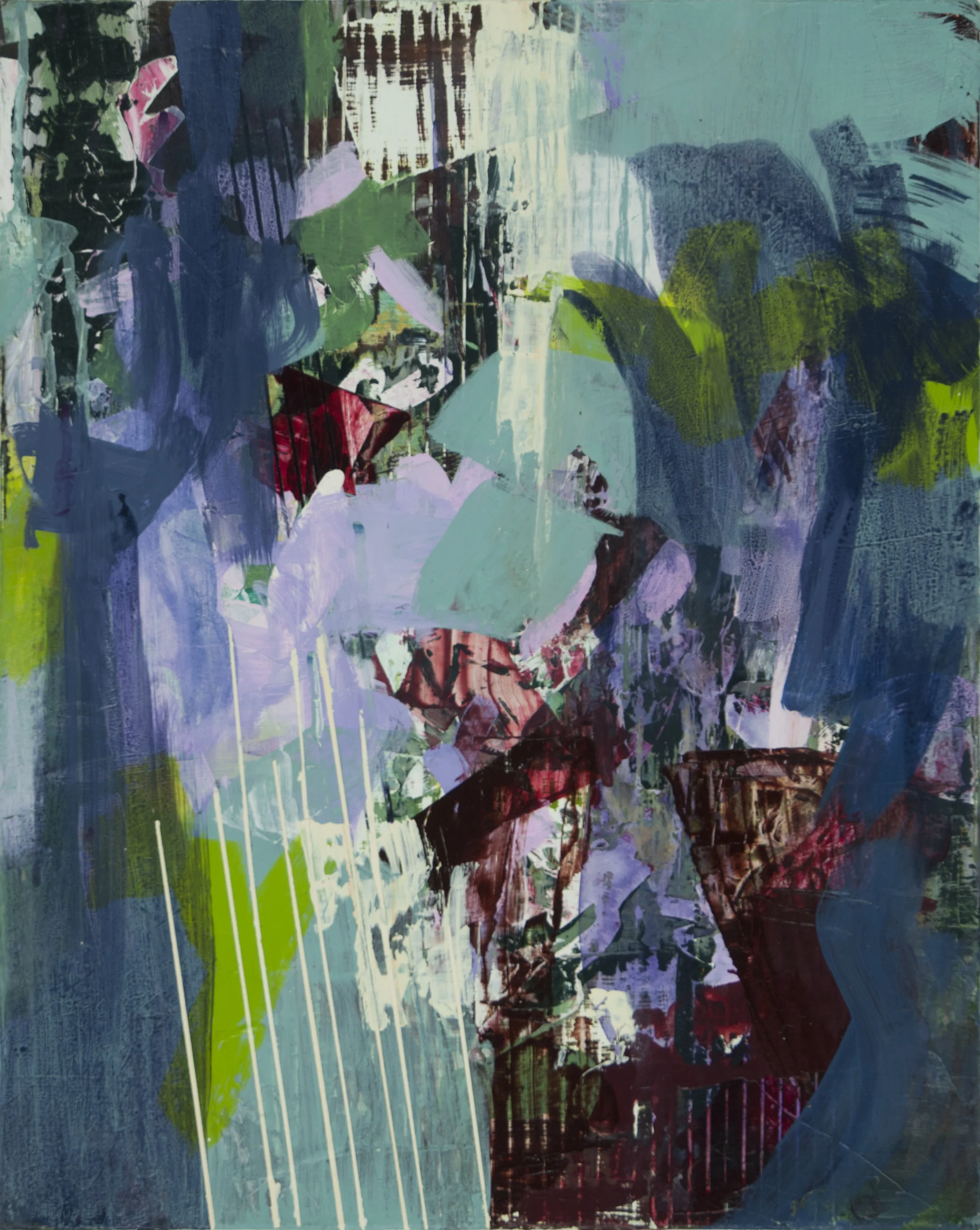 To be seen an alpine often requires you to look closely (through piles of rock & shrub) for discovery. This piece is aptly titled because it begs the viewer to look past larger blocked in brush work to see its intricacies. The colors are taken from Fall blueberry bushes and lichens above tree line.