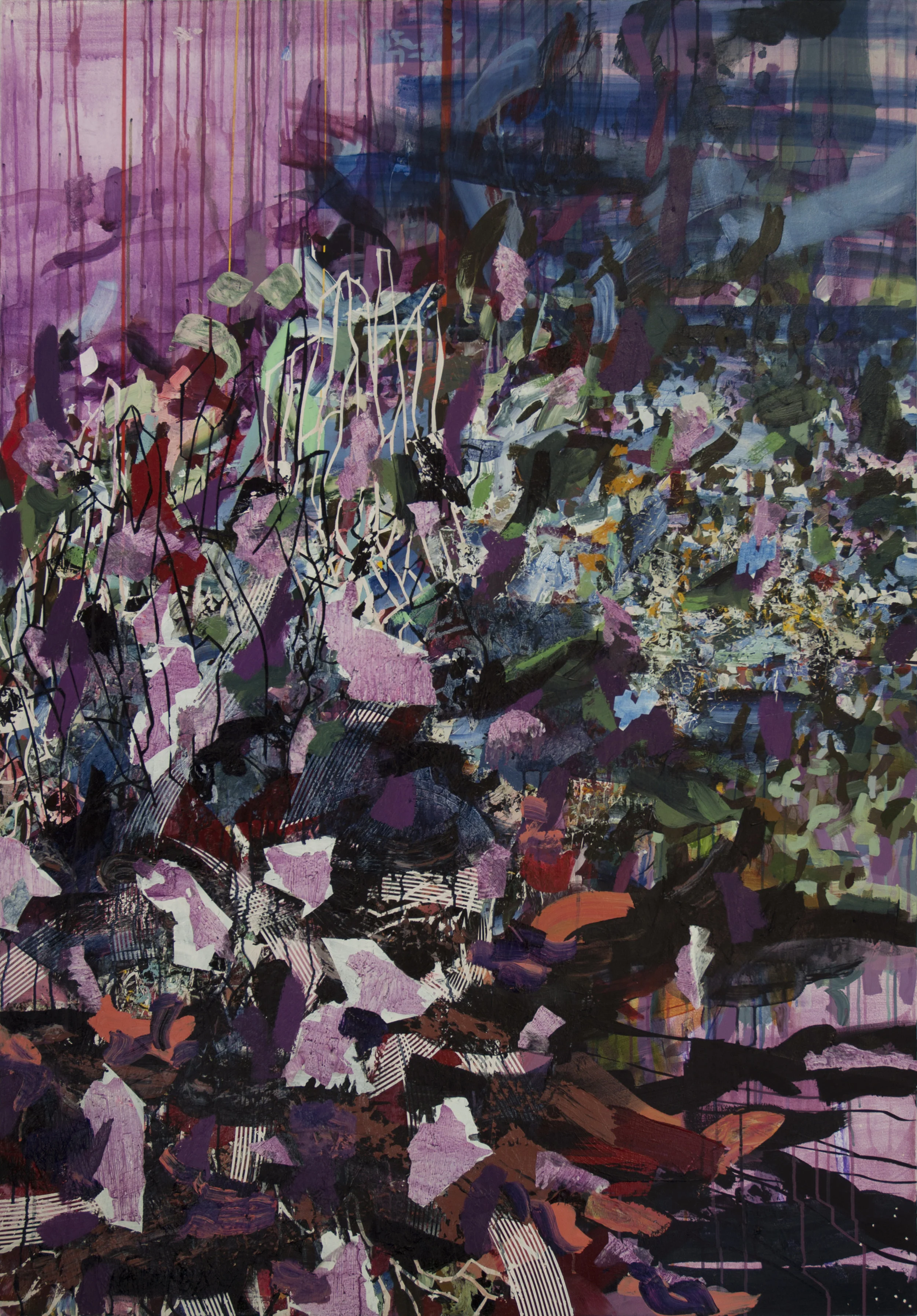 Waterfall Rocks, acrylic on canvas, 48” x 72”